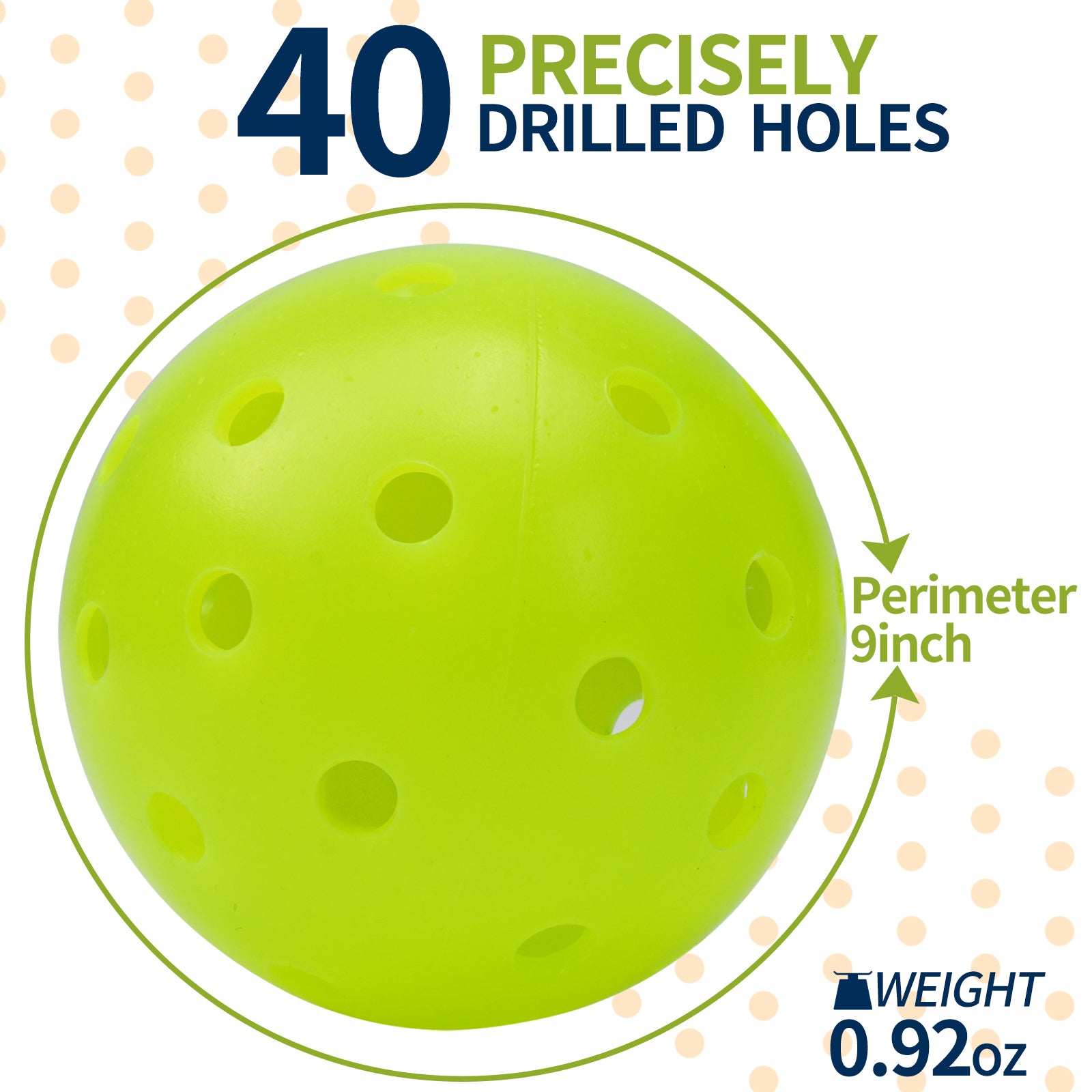 Optimized for Playability: With 40 precision-drilled holes, our pickleball ball is engineered for optimal airflow, which allows for superb flight stability and reduces wind interference. The holes are strategically sized and placed to deliver a balanced, medium-speed flight trajectory, making the IANONI ball perfect for both competitive players and casual enthusiasts seeking a high-quality game.